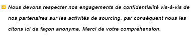 Notre expérience est que les risques principaux rencontrés dans les opérations de sourcing découlent de ce fait. Le fournisseur chinois peut au moment de la réalisation de la commande se trouver beaucoup moins motivé que lors des premiers contacts car la situation a évolué de son coté : il avait sous-estimé la complexité ou le niveau d’exigence qualité, il a entre temps obtenu d’autres commandes plus rémunératrices,… Il peut alors juger préférable de traiter la commande avec un niveau de priorité faible, sachant que même si il perd au final ce client il a d’autres prospects en vue qu’il juge meilleurs.